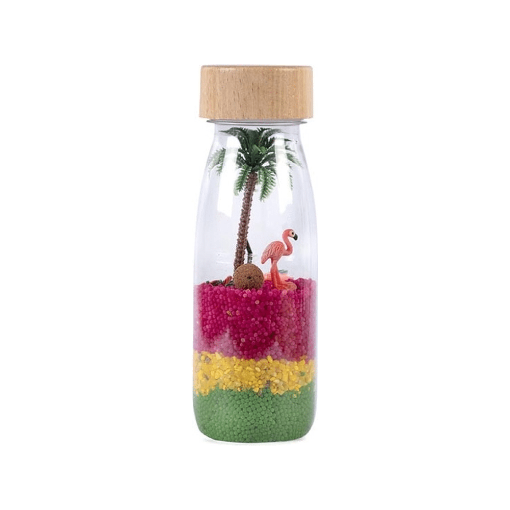 Dit vrolijke Petit Boum sensorische flesje in flamingo-thema biedt eindeloos plezier voor jonge kinderen. Het kleurrijke ontwerp en de bewegende vloeistoffen helpen kinderen bij het ontwikkelen van hun visuele en motorische vaardigheden. Dit speeltje is perfect voor het bevorderen van kalmte en concentratie, en kan ook worden gebruikt om de zintuigen van kinderen te prikkelen.