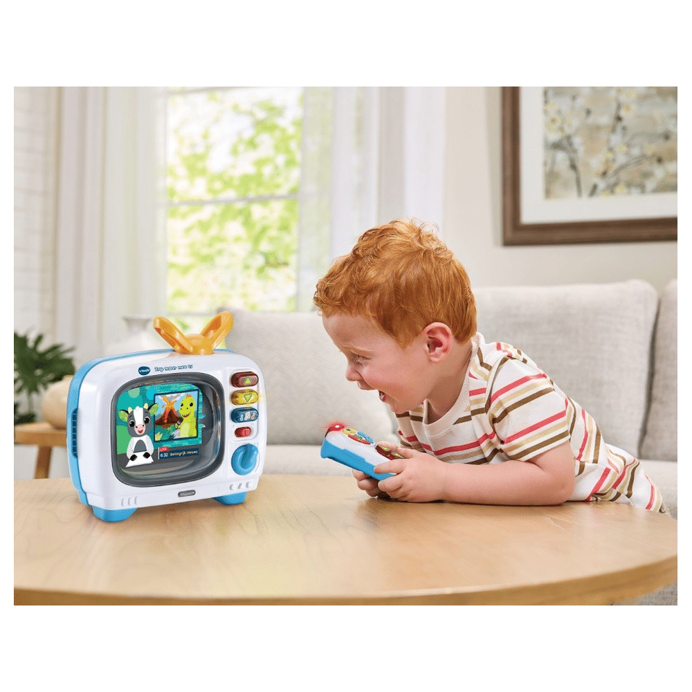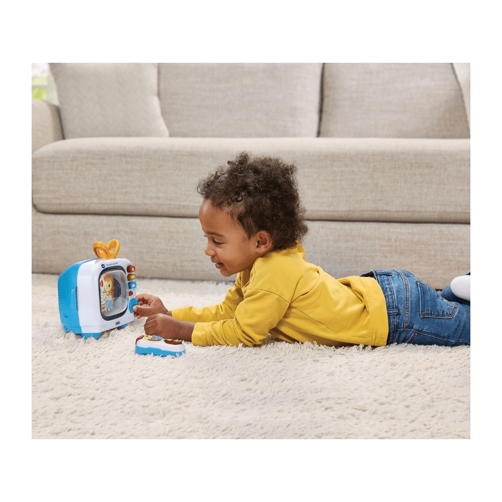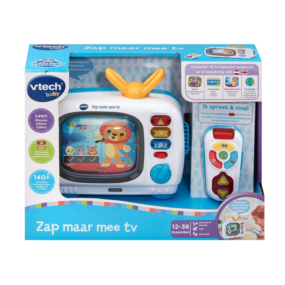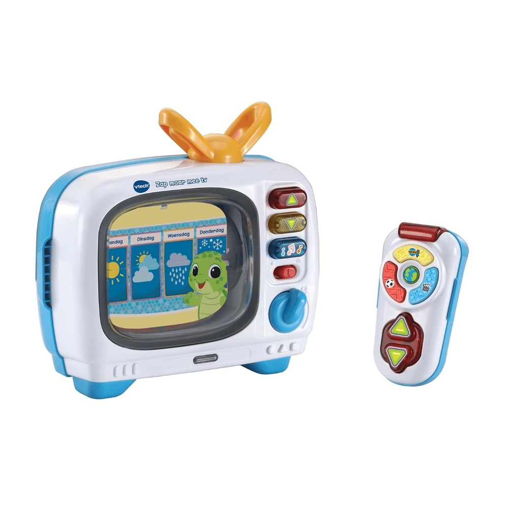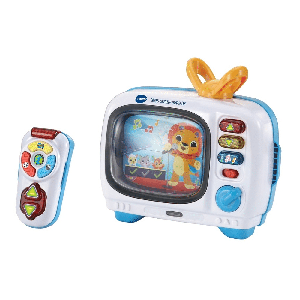 Met de Vtech Baby Zap Maar Mee Tv breng jij de magie van televisie helemaal naar jouw speelkamer! Draai zelf aan de knop en kijk hoe het vrolijke schermpje tot leven komt met kleurrijke plaatjes die langzaam voorbij schuiven. Terwijl jij zapt, hoor je speelse melodietjes, grappige zinnetjes en vrolijke geluiden die je uitnodigen om mee te bewegen, te lachen en te ontdekken. Zo voelt het alsof jij jouw eigen tv-programma bedient, maar dan op een veilige en leerrijke manier.
